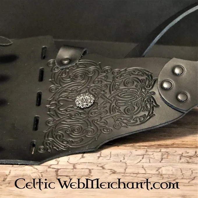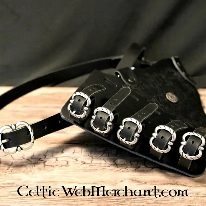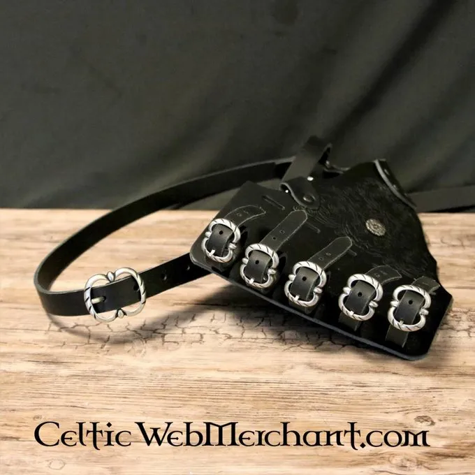 Ce baldric est une réplique d’originaux représentée sur les peintures hollandaises du 16ème au 17ème siècle. Baldrics était porté à la fois autour des épaules et autour de la taille. Ce baldric est conçu pour porter autour de la taille. Il est en cuir de haute qualité et décoré d’un motif souvent utilisé à la fin des XVIe et XVIIe siècles. Ce baldric peut facilement être ajusté à la taille de la fourreau ou du fourreau de l’épée.