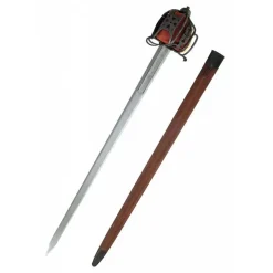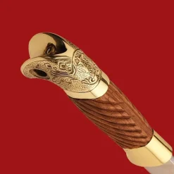 Ce cimeterre est fabriqué en acier inoxydable, ce qui facilite son entretien. La poignée est en bois et dispose d’un raccord en métal. Il est livré avec un fourreau en cuir.