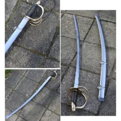 La lame de cette épée peut être émoussée (2,5-3 mm) avec un supplément de € 70,00. Remarque: bien que l’épaisseur soit identique à celle d’une épée de combat, le droit de retour et la garantie expirent lors de l’utilisation du service d’émoussement. N’hésitez pas à nous contacter si vous désirez utiliser le service d’émoussement ou notez à la dernière étape de votre chariot shiopping. Le délai de livraison supplémentaire est d’env. 2 semaines.