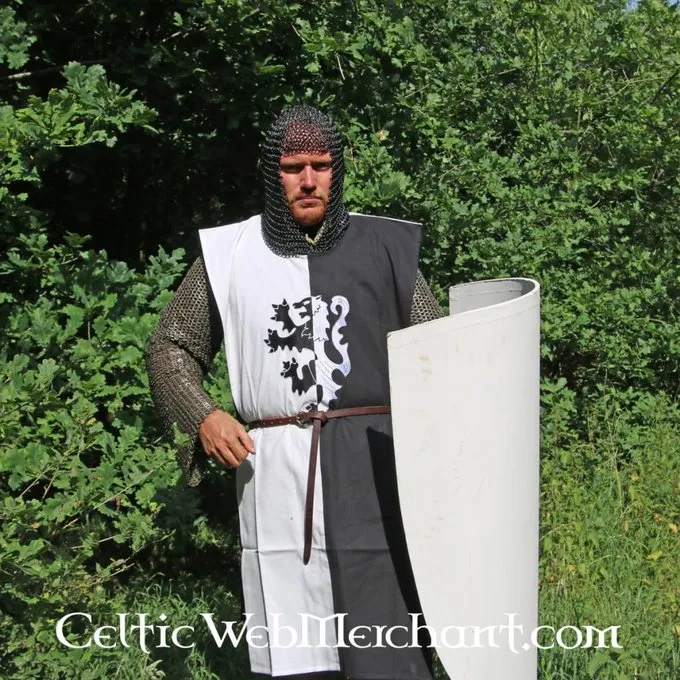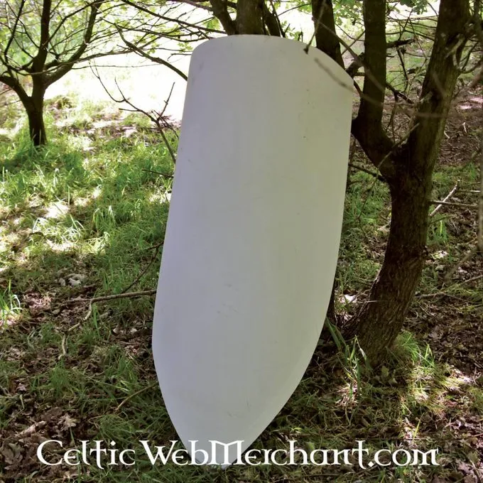 Des boucliers comme celui-ci sont développés à partir des types représentés sur la tapisserie de Bayeux. Les boucliers avaient une face supérieure plus plate. Des boucliers comme celui-ci ont été utilisés entre le 12ème et le 13ème siècle. Ils ont été utilisés partout dans le monde chrétien pendant les croisades.
