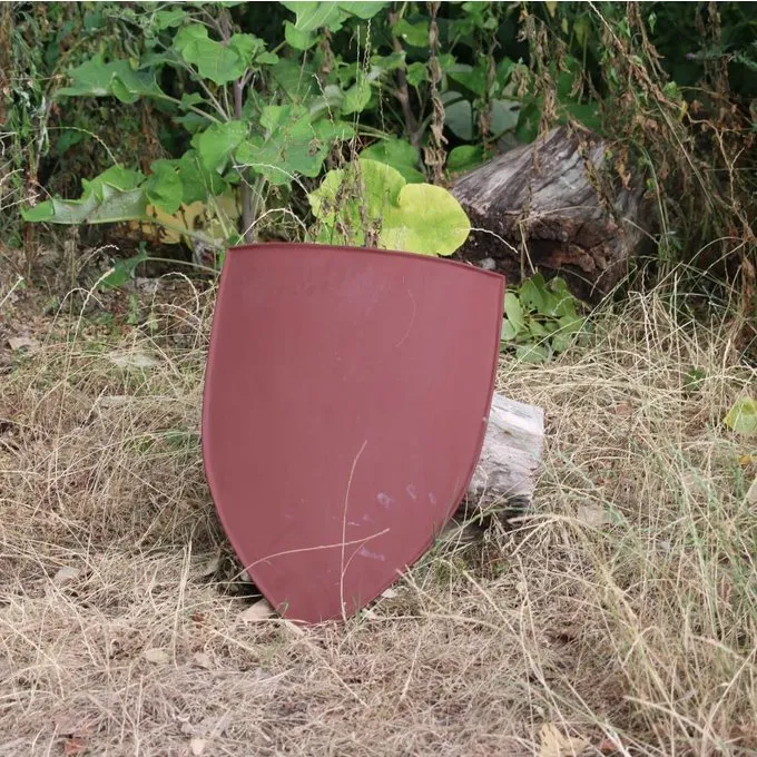 Ce cerf-volant bouclier est faite de 1,2 cm d’épaisseur en acier. Elle est traitée uniquement avec une couche d’acier inoxydable et il peut être peint dans vos couleurs désirées ou manteau-de-bras. Le dos a une poignée pour une bonne prise en main. Le bouclier a une hauteur de 68 cm et une largeur de 50 cm. Il pèse environ. 3,3 kg.