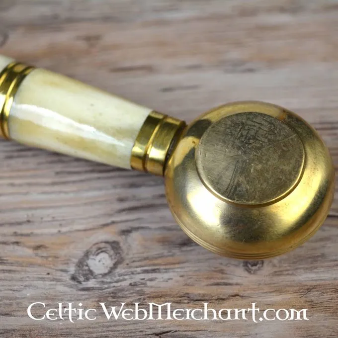 L’épée est de 95 cm de long, avec une lame de 78,5 cm de long. La poignée est faite à partir d’os, le pommeau et garde sont en laiton. L’épée est livrée avec fourreau de cuir robuste avec boucle de ceinture.