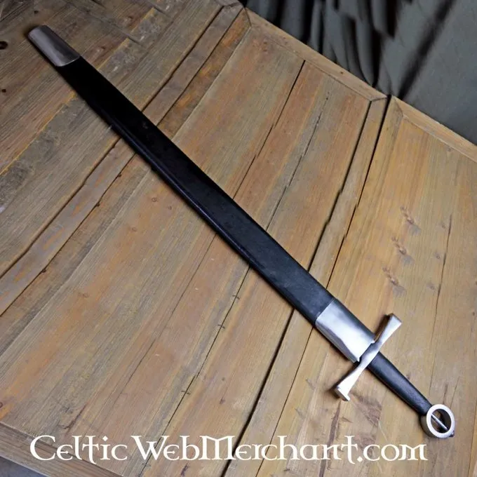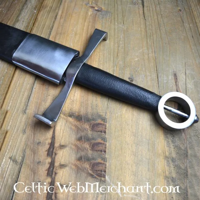 Détails du produit: Longueur: 105 cm / Type d’acier: EN45 acier à ressort, dureté 48-50 HRC / Bord: Semi-pointu / Construction Tang: Construction pleine tige / Pommel: Emballage vissé / Grip: Bois, Cuir / Basé sur un original historique : Oui /