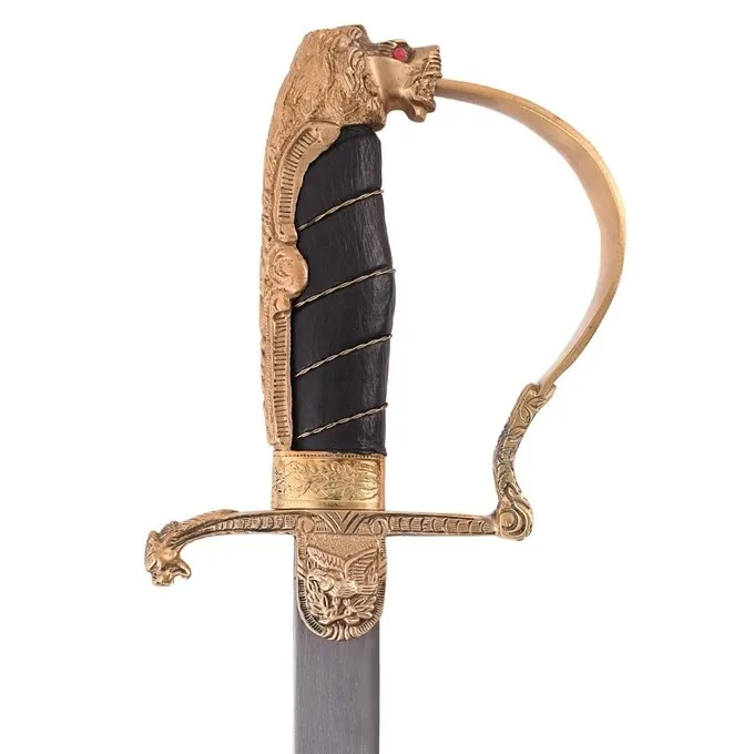 Les sabres avec des décorations en tête de lion étaient principalement utilisés par les officiers prussiens et allemands pendant la Première et la Seconde Guerre mondiale. Il y avait beaucoup de variations de ce sabre. Ce sabre n’est pas une réplique exacte d’un original historique, mais il repose sur divers éléments du sabre de cérémonie original utilisé par les officiers allemands pendant la Seconde Guerre mondiale.