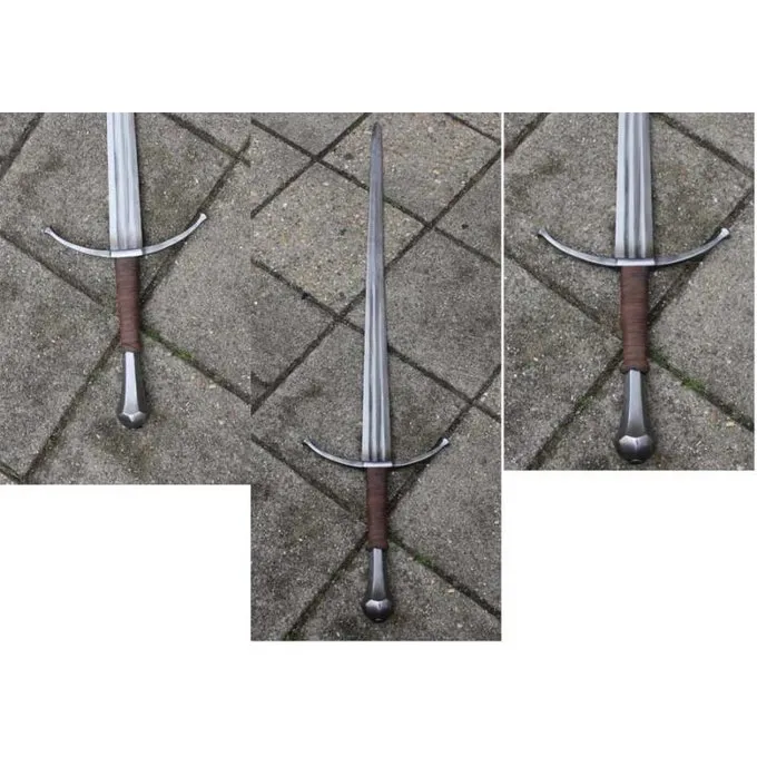 L’épée à main et demie William est fabriquée après un 14e ? Original du XVe siècle. Autour de cette période, les épées sont devenues de plus en plus typiques comme ce long pommeau de bouchon de parfum. Des épées comme celle-ci ont été utilisées dans toute l’Europe et les originaux d’épées comme celle-ci font partie des collections des Royal Armouries de Leeds, du London Museum, du Musée de l’Armée à Paris et du Trésor royal de Vienne.