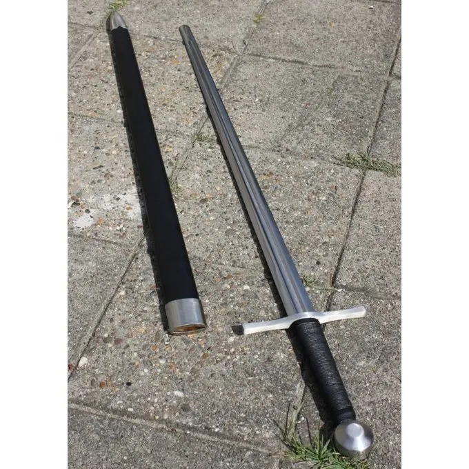 Détails de produit: Longueur: 110 cm / Longueur de lame: 85.5cm / Longueur de poignée: 18 cm / Poids: 1230 g / Point d’équilibre: 9.5 cm / Type d’acier de la lame: EN45 acier au caros, dureté 50-55 HRC / Tranchant afilé: émoussé (2 mm, battle-ready) / Soi