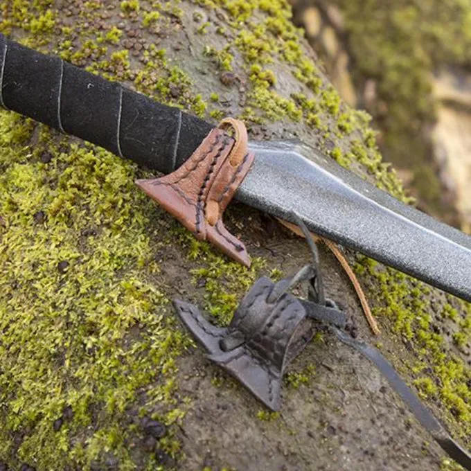 LARP épées elfiques sont souvent sans garde, par conséquent, ils ne rentrent pas dans les porte-épée LARP plus standard. Vous pouvez lier cet accessoire en cuir à la poignée de votre épée elfique juste au-dessus de la lame. Il est un ajout à l’aspect esthétique de votre épée LARP, mais il assure aussi que l’épée de LARP reste dans le porte-épée. Bien sûr, cet accessoire en cuir est non seulement approprié pour les épées de LARP, mais pour chaque épée LARP qui ne reste pas dans un support en raison d’un garde court.