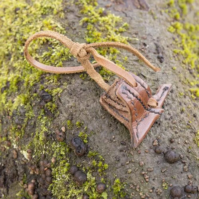 Matière: 100% cuir tanné végétal / / Couleur marron / / Longueur: 3,8 cm / / Largeur: 2 cm / / Hauteur: 5,5 cm /