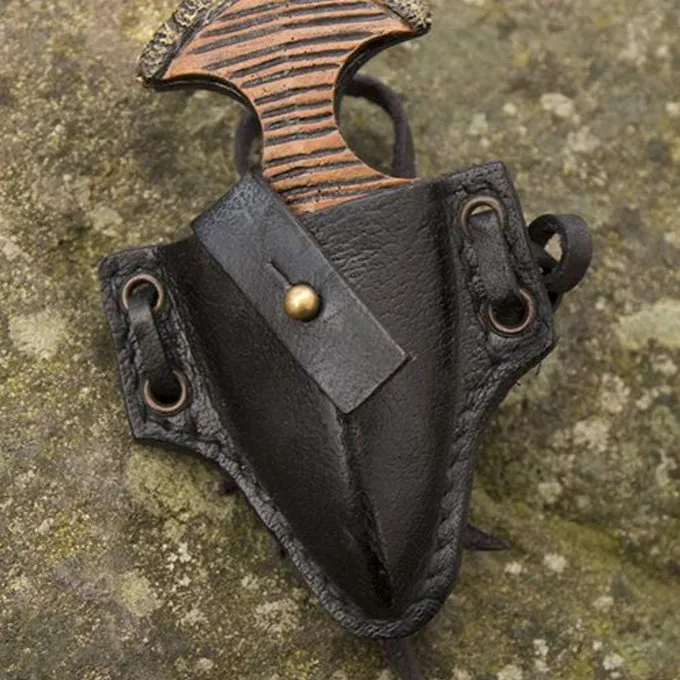 Cet ensemble se compose d’un support en cuir avec un poignard de poignet LARP. Avec les lacets, vous pouvez fixer le support à une ceinture ou un Bandelier. Avec une boucle supplémentaire, vous pouvez fixer le couteau dans le support pour qu’il reste en place même dans la chaleur de la bataille.