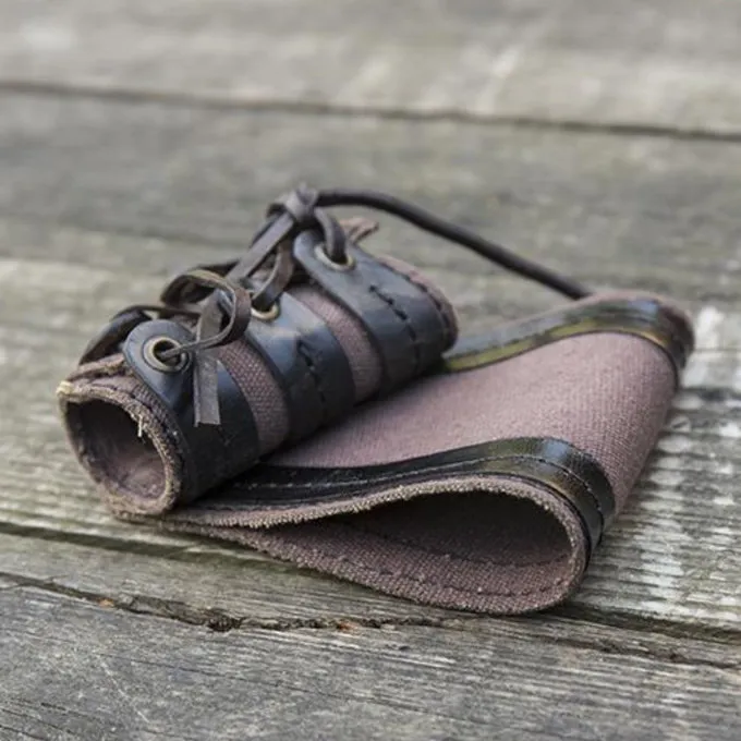 Ce support de GN convient à diverses armes de GN, telles que les dagues et les épées. Le support est assez court et convient aux armes avec un max. diamètre de 5 cm. Il peut être ajusté à la taille avec les lacets. Il a une boucle pour l’accrocher à votre ceinture afin que vous puissiez saisir votre arme rapidement pendant les batailles de GN. Le support est en toile robuste renforcée de bords en cuir.