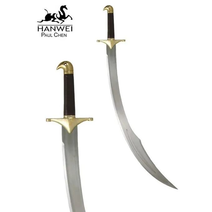 Le cimeterre est une réplique d’originaux au temps des croisades jusqu’à des centaines d’années après qu’il a été utilisé par les musulmans au Moyen-Orient. Ce cimeterre solide est semi-forte, et dispose d’une lame en acier au carbone ayant une dureté de 50 à 52 HRC. La poignée est faite de bois dur.