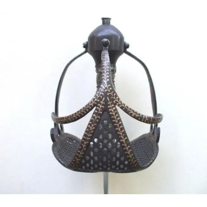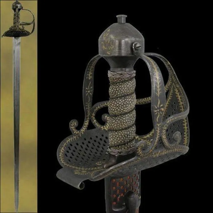 Ce modèle dispose d’une poignée bronze foncé qui est décoré avec de l’or et une poignée qui est enveloppé ronde avec peau de requin. Parce que le fourreau d’origine n’a jamais été retrouvé, cette épée est livré avec un fourreau qui est typique pour le 17ème siècle. L’épée a une longueur de 110,5 cm avec une lame de 83,2 cm et il pèse 1471 g.