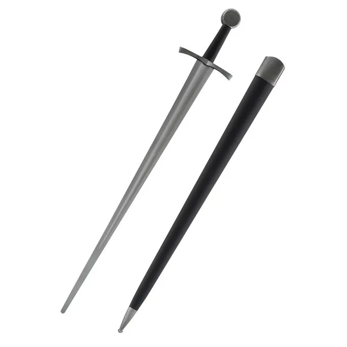Cette épée est spécialement développé pour les écoles épée de combat et reconstitution. L’épée est prêt au combat et la lame est faite d’acier au carbone avec une dureté de HRC 50. Sa longueur est de 97 cm avec une lame de 79 cm et il pèse environ. 1 kg.