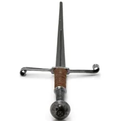 Cette épée a été développée par Gus Garni pour les armes de Kingston. Cette épée est basée sur des originaux historiques fabriqués entre les 13e et les premiers 14ème siècles. Avec le développement de l’armure d’assiette de cette époque, les épées ont développé une forme plus pointue pour poignarder des taches plus faibles. Cette épée a une lame en acier à ressort 9260. Le pommeau est glacé, ce qui signifie que la construction de Tang traverse le pommeau et est rivé au sommet.