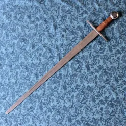 Détails du produit : Longueur : 73 cm / Longueur lame : 57 cm / Longueur poignée : 16 cm / Largeur lame au garde : 5 cm / Poids : 1300 g / Type d’acier : Acier ressort (DIN 54SiCr6) 48-50 HRC / Tranchant : Blunt (3 mm prêt au combat)/Construction de la so