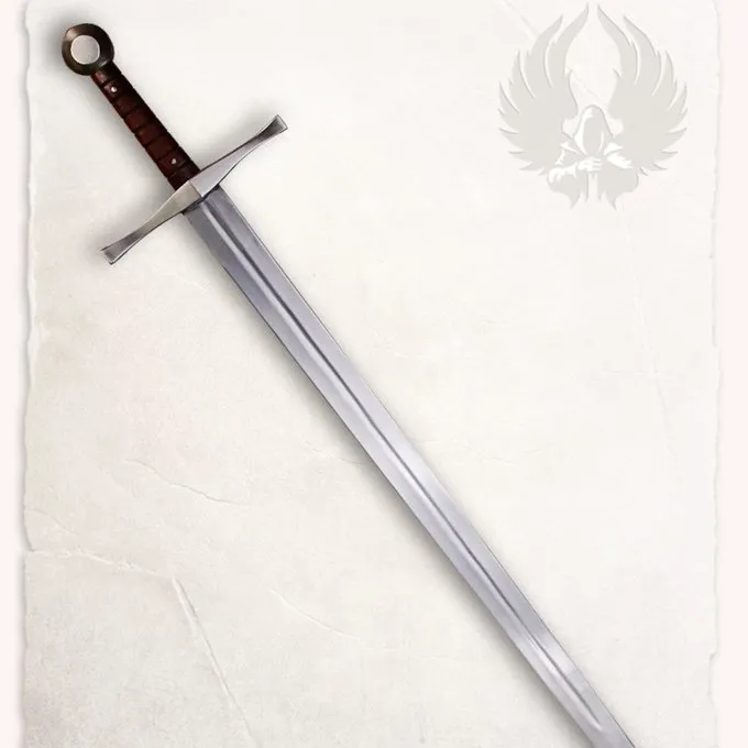 Cette épée à main et demi est basée sur les modèles antérieurs d’épée à main et demi comme le type Oakeshott XIIa. Des épées de ce type étaient déjà utilisées au début du 14ème siècle. Un original a été utilisé par les Templiers et a été trouvé dans la Tamise à Londres près de Temple Church. Cette épée prête au combat convient aux combats légers à l’épée.