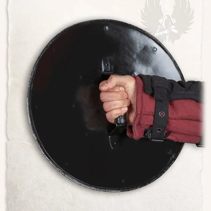 C’est basé sur buckler originaux du 15ème siècle. Buckler comme celui-ci ont été représentés, entre autres, des livres et des manuscrits de combat. Buckler ont été utilisés aussi dans la Renaissance. Ils sont une défense idéale et arme offensive. Les bords de cette buckler sont décorées avec une extrémité en forme de corde. Les bords sont arrondis à cause aussi peu de dégâts que possible. Il est fait d’acier de 2 mm d’épaisseur qui est parfait pour reconstitution historique et historique de l’Europe Arts Martiaux.