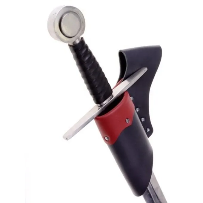 Ce cuir porte-épée est en cuir nappa. Le porte-lame est adapté pour GN épées jusqu’à un diamètre de 6 cm. Vous pouvez accrocher le support sur votre ceinture afin que vous puissiez rapidement tirer l’épée lors de combats LARP.