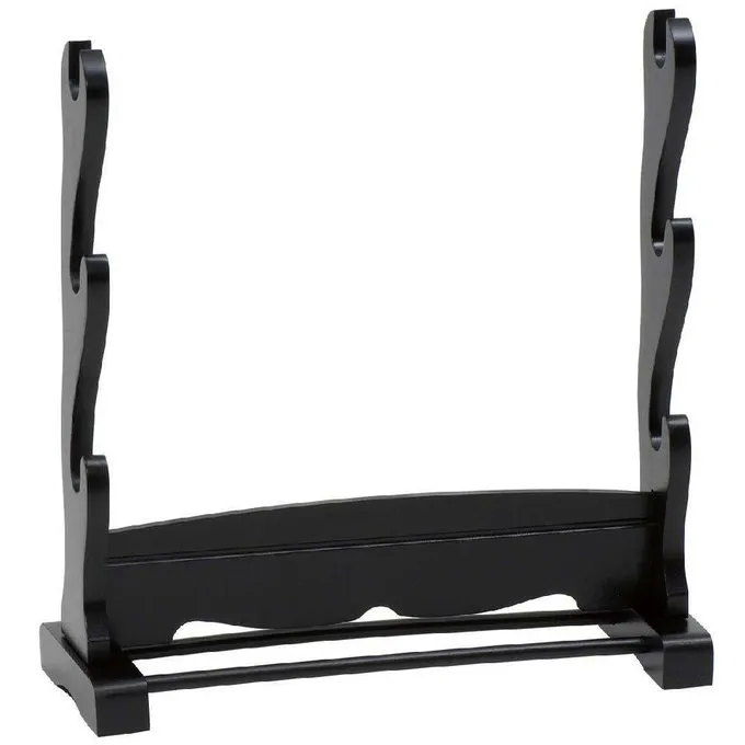 Cette norme est adapté pour trois katanas, Iaito, wakizashis ou Bokkens. Il est fait de bois teinté noir et est 42,5 cm de large et 44 cm de haut.