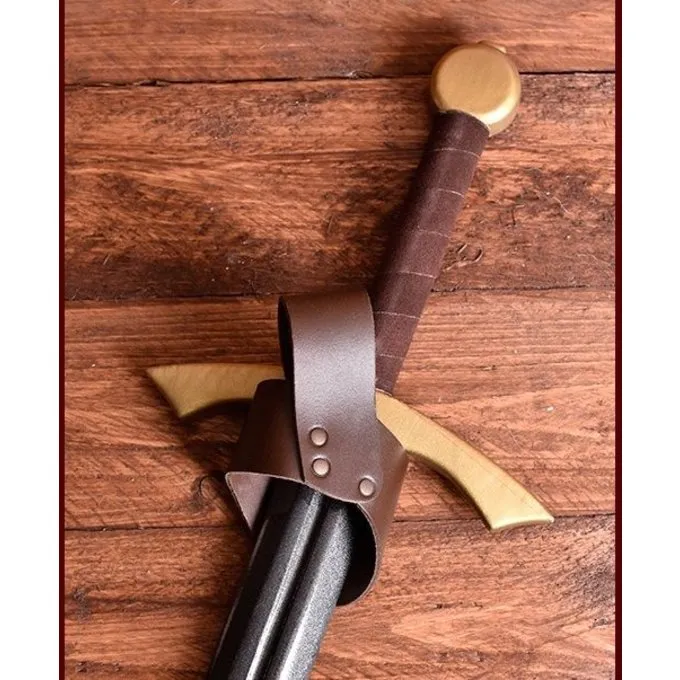 Un porte-épée marron pour les épées en latex de GN. En deux tailles, avec une ouverture de 7 cm et une ouverture de 10 cm. Le porte-lame peut être fixée à une courroie avec une boucle. Très pratique est l’épée dans le conteneur transformés bord angulaire rendant LARP épée est pas venu de l’avant avec la pendaison de la lame. Le matériel est en cuir de vache et 2,5 mm d’épaisseur. La taille est de 10 x 17 ou 12 x 19 cm. Convient pour les ceintures jusqu’à 7 cm.