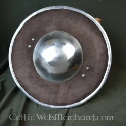 Ce bouclier rond est recouvert de cuir pour une protection supplémentaire. Boucliers de ce genre ont été principalement utilisés à la Renaissance bien que le type était beaucoup plus gé. Cette arme est parfait combiné avec une épée à une main ou d’un arc.