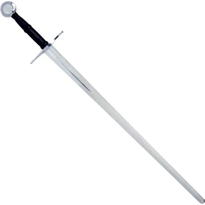 Détails du produit: Longueur: 112 cm; Longueur de la lame: 86 cm; Type d’acier: acier au carbone; Edge: contondant prêt au combat (2,5 – 3 mm); Construction de Tang: Full Tang; Pommeau: vissé; Grip: cuir noir; Livré sans fourreau; Basé sur l’original hist