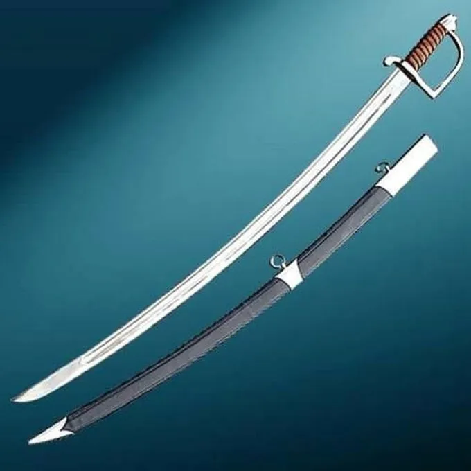Un beau sabre par Windlass Steelcrafts, basé sur Sabres utilisés par les agents pendant la Révolution américaine. Les colons qui voulaient fonder les Etats-Unis ont reçu l’aide du gouvernement français. Ce sabre est basé sur des Sabres Hussards français et est amde en 1700 style français. Ils étaient un excellent exemple pour les 13 colonies américaines. La Révolution française a été une source d’inspiration pour la Révolution américaine contre les Anglais. Ce sabre a une poignée en bois avec un motif en spirale et est livrée avec fourreau. La lame semi-pointue extrêmement forte est forgée à partir d’acier au carbone 1085 trempé avec une dureté de 52 HRC. Une belle épée décorative pour le mur ou sur un écran d’épée, aussi parfait pour la reconstitution de l’histoire américaine. Lorsque vous blunten la lame, il est une excellente bataille épée prête pour le combat à l’épée.